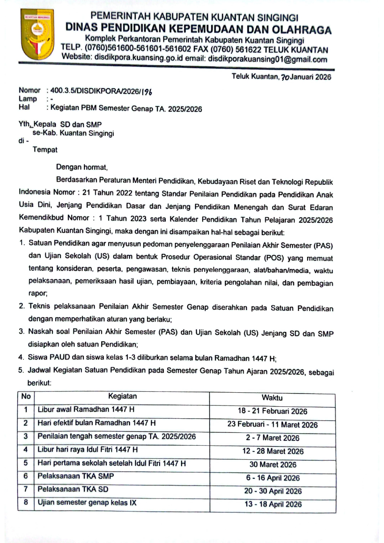 Email : disdikporakuansing01@gmail.com ,