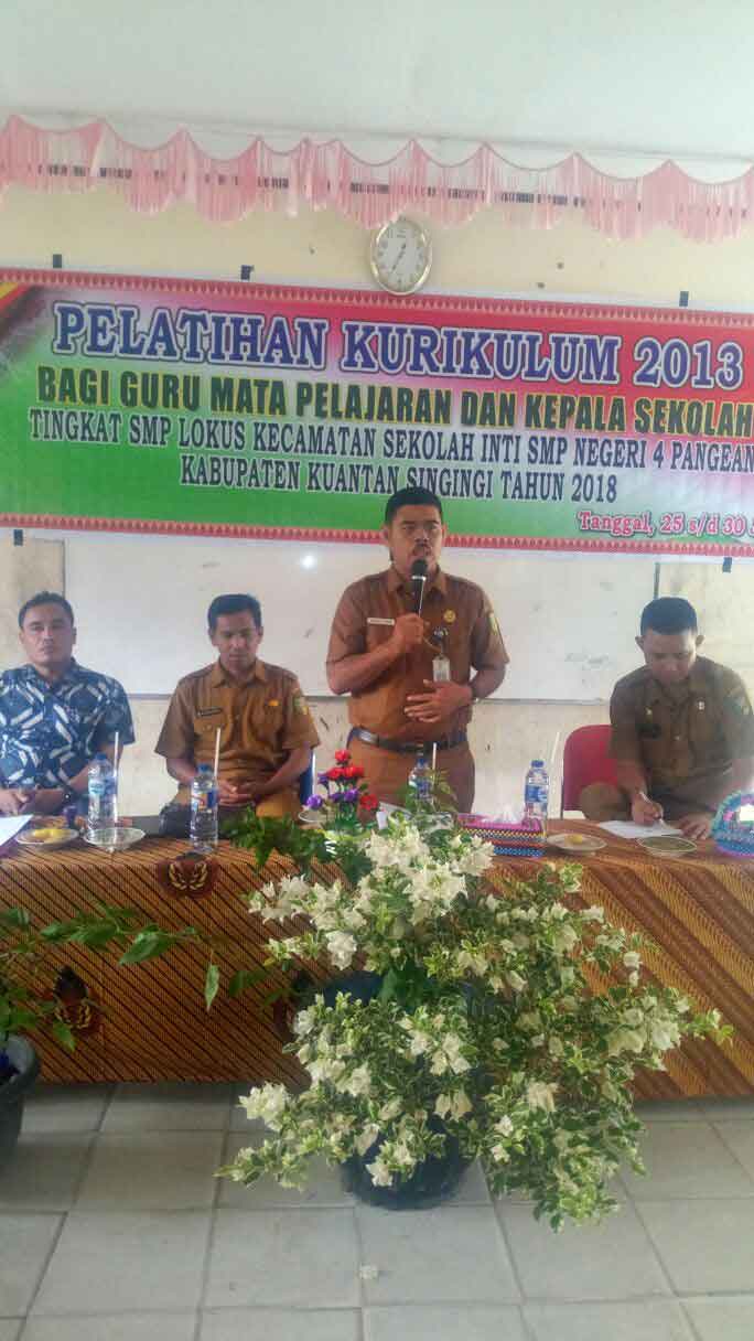 Foto berikut ini adalah Kabid Pendidikan Dasar (Kabid Dikdas PKPLK) Disdikpora Kab.Kuantan Singingi membuka acara pada Kegiatan Bimbingan Teknis Pelaksanaan Kurikulum 2013 (K13) bagi guru-guru SMP tahun 2018.